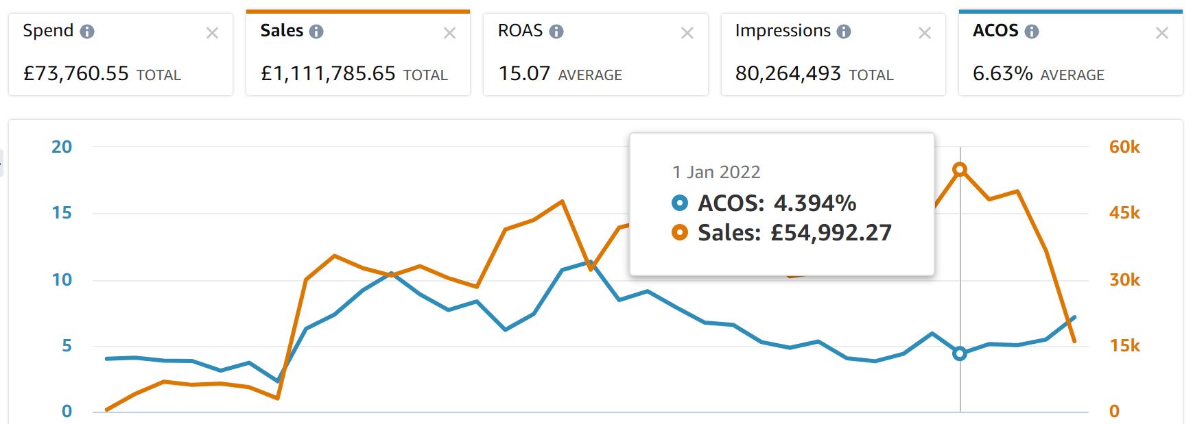 Client wanted to improve their sales without affecting their good ACOS. We managed to 3x Sales for this client while lowering their ACOS and improving conversion rates by targeting better keywords & ASINs. Their organic sales improved by 35% as a direct result.